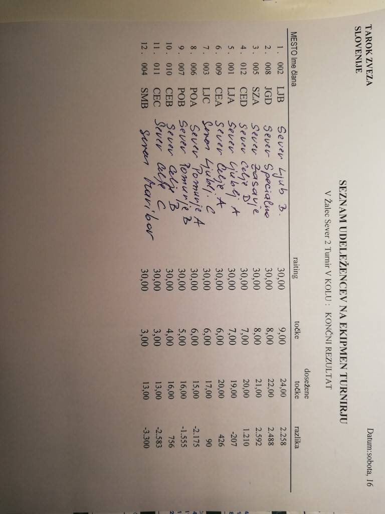 PVD Sever za celjsko območje je pod pokroviteljstvom ZPVD Sever v soboto, 16. novembra 2019, v Žalcu, organiziralo 2. državno prvenstvo ZPVD Sever v igranju taroka.
