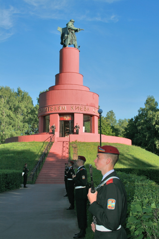 Še nekaj iz novejše zgodovine, predvsem druge svetovne vojne. Po bitki pri Kursku so Rusi v avgustu 1943 ob reki Dnjeper sprožili novo ofenzivo. Kijev, ki leži neposredno ob reki, je bil osvobojen decembra leta 1943. O žrtvah je skoraj nepredstavljivo govoriti, saj je celotna ofenziva zahtevala čez 2 miljona žrtev na obeh straneh (sovjeti cca. 1.500.000). Samo na področju Kijeva je bilo po ocenah zgodovinarjev okoli 300.000 mrtvih vojakov. Veliko vojakov je umrlo, ko so na improviziranih splavih skušali prečkati reko Dnjeper in pri tem padli v mrzlo reko. Položaji nemških sil so bili dobro utrjeni ina nekoliko dvignjenem terenu nad reko, s katerega so imeli dober pregled nad dogajanjem. V času ofenzive je na tem rejonu deloval tudi kasnejši predsednik Sovjetske zveze Nikita Hruščov. Po vdoru Nemcev na ozemlje Ukrajine, je kot najvišji partijski funkcionar organiziral obrambo mesta Kijev. Po padcu mesta so ga umaknili v Moskvo, od koder se je vrnil kot politkomisar s činom generalporočnika.