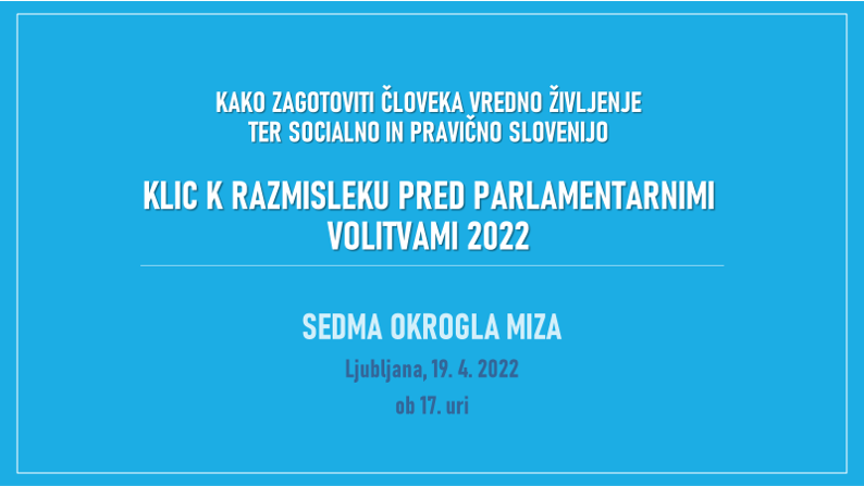 Skupina za informiranje pri Koordinaciji domoljubnih in veteranskih organizacij Slovenije (KoDVOS) je pripravila sedmo okroglo mizo iz ciklusa okroglih miz, ki so jih poimenovali: »Kako zagotoviti človeka vredno življenje ter socialno in pravično Slovenijo«. Tokratna okrogla miza nosi naslov: KLIC K RAZMISLEKU PRED PARLAMENTARNIMI VOLITVAMI 2022.