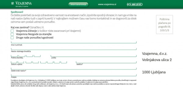 Informacijo o možnostih sklenitve dopolnilnega zdravstvenega zavarovanja za vojne veterane in veteranke pod ugodnejšimi pogoji in dodatnimi ugodnostmi, ter ponudbe vseh treh zavarovalnic bomo še v tem mesecu po pošti poslali tudi na domove vseh članov ZS in ZVVS, tako da se bomo lažje odločili, komu bomo zaupali naše dopolnilno zavarovanje v prihodnje.
