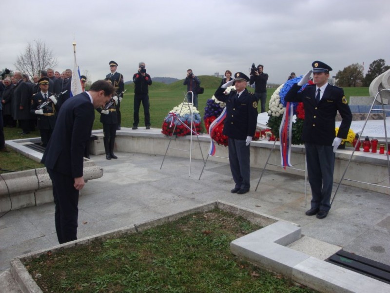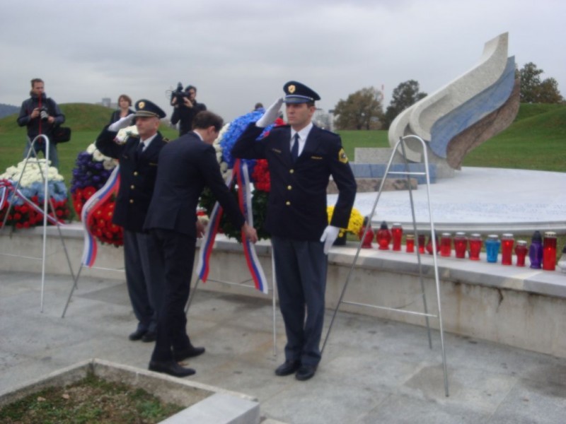 - ob 09.15 uri spominska slovesnost pri Spomeniku padlim v vojni za Slovenijo 91. Z vojaškimi častmi so vence položili v imenu MO/SV obrambni minister Roman Jakič in načelnik GŠ SV brigadir Dobran Božič s sodelavci, v imenu MNZ/Policije notranji minister dr. Gregor Virant in generalni direktor policije Stanislav Veniger s sodelavci, v imenu KoDVOS predsednik ZVVS Ladislav Lipič, Združenja Sever Miha Molan in ZDK MORiS Peter Vaš, ter delegacija MO Ljubljana pod vodstvom župana Zorana Jankovića. Sodelovali so Častna enota SV, Policijski orkester, Partizanski pevski zbor in recitatorka Mojca Poredoš. Svojce padlih in ostale udeležence je nagovoril obrambni minister Roman Jakič.