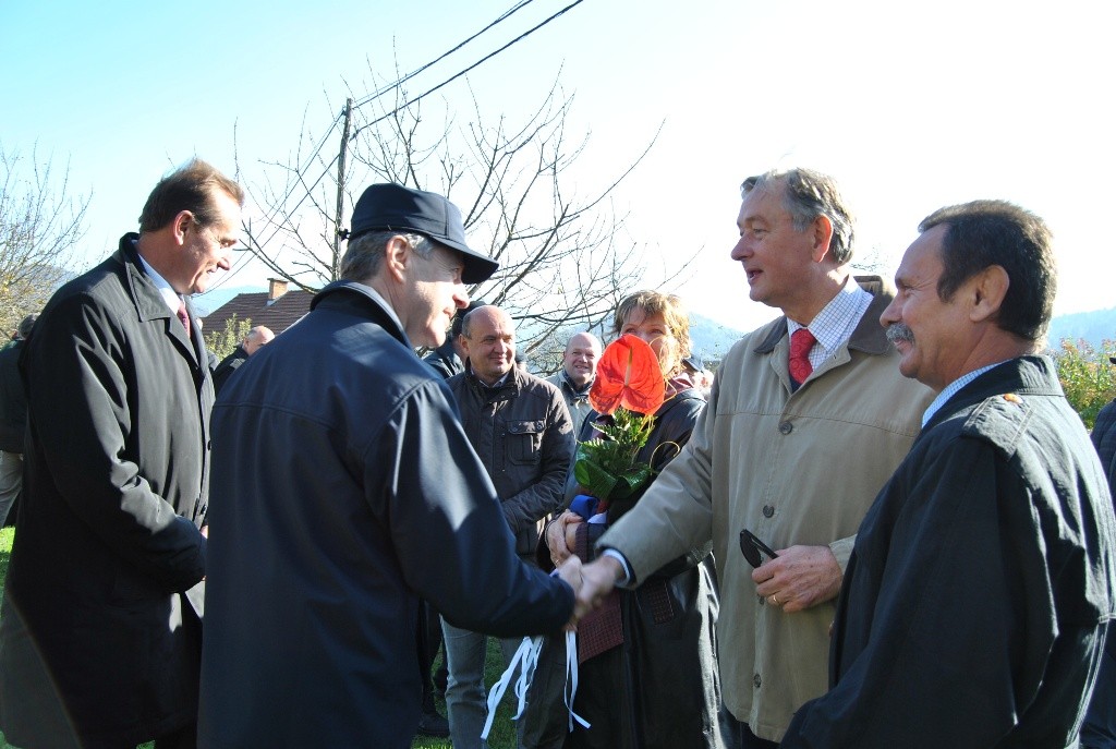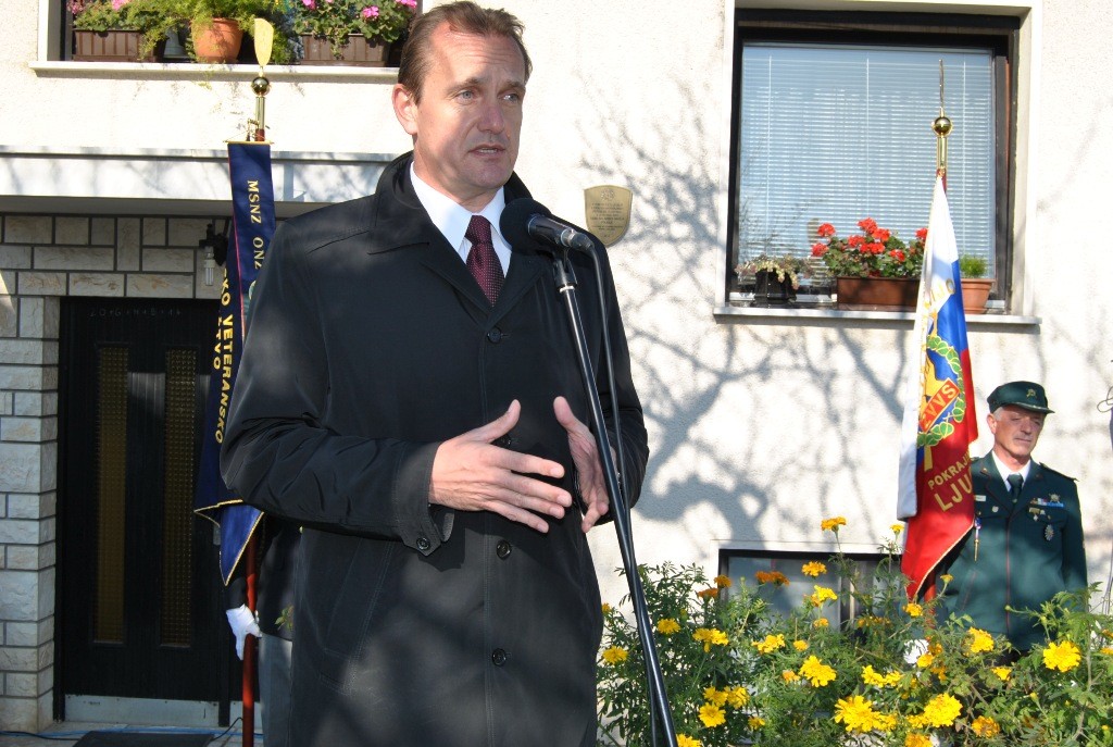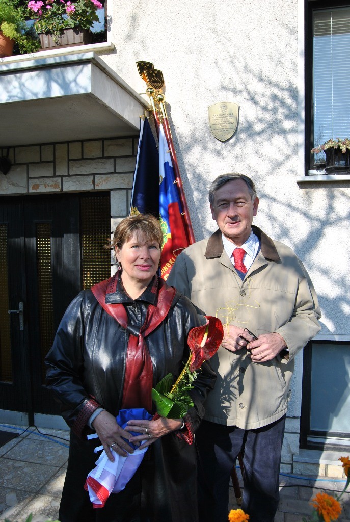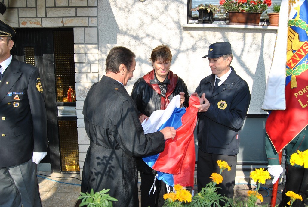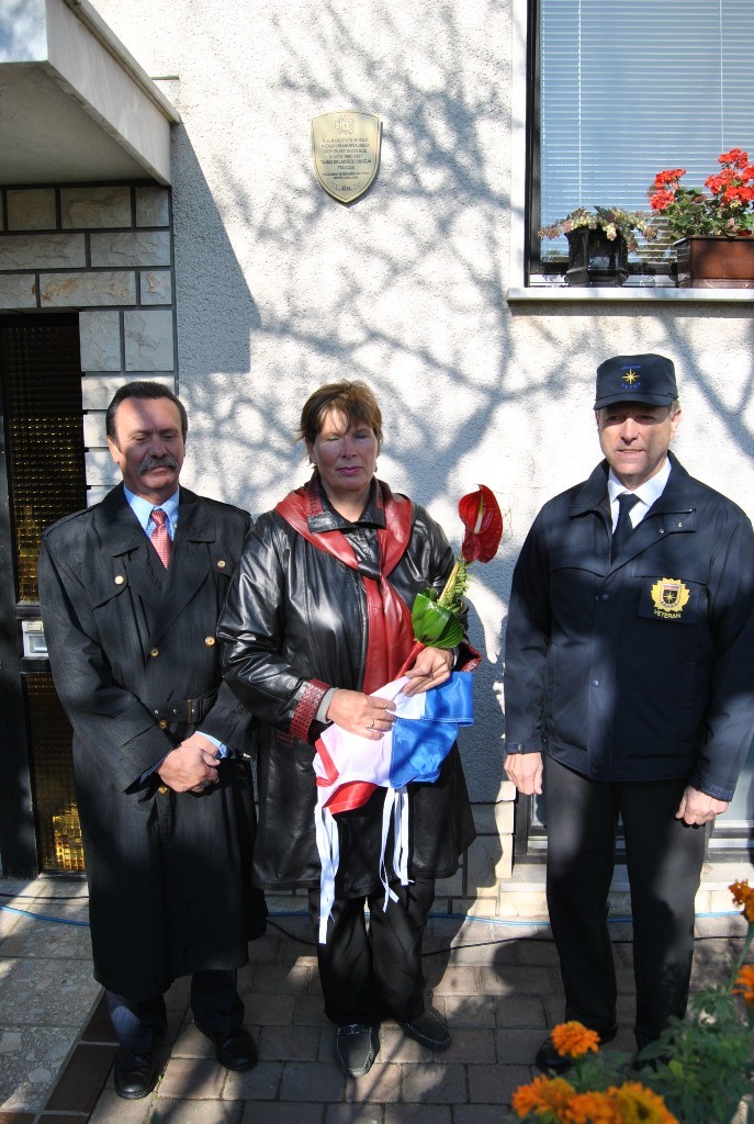 Magda Rozman, Stane Leskovšek in Emerik Peterka so nato slavnostno odkrili spominsko ploščo.