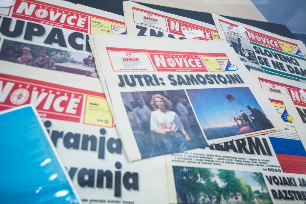 Pred začetkom okrogle mize je Aljaž Strmljan predstavil del eksponatov iz obdobja osamosvojitve Slovenije iz svoje zasebne zbirke.