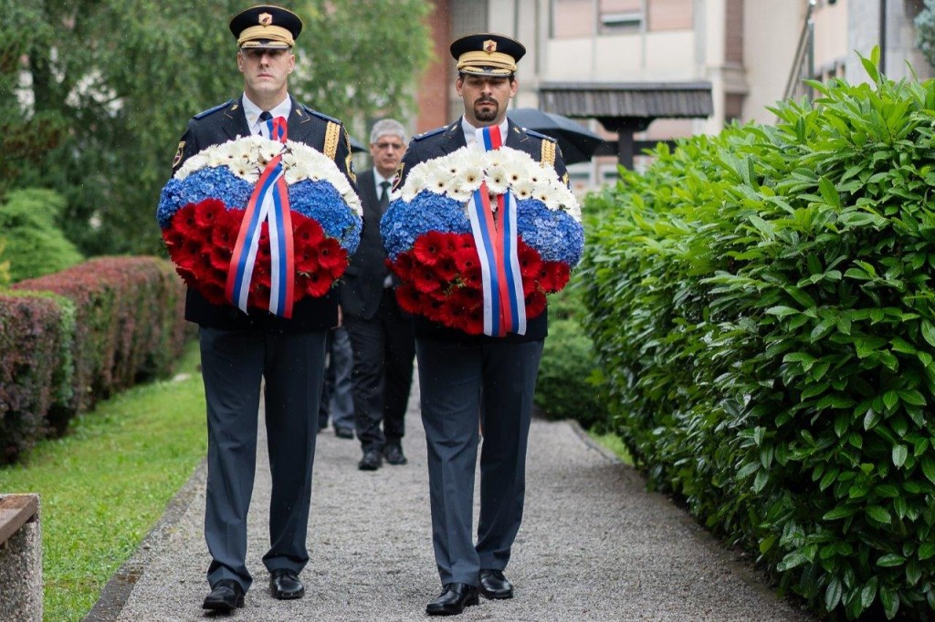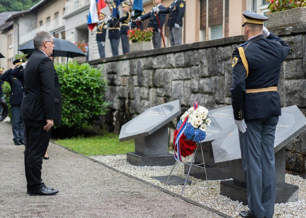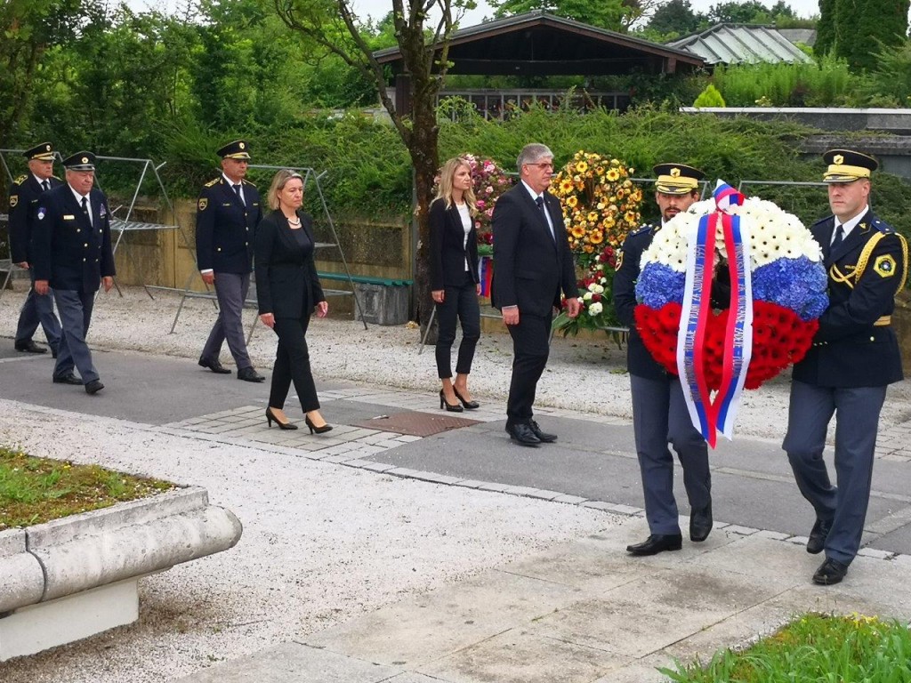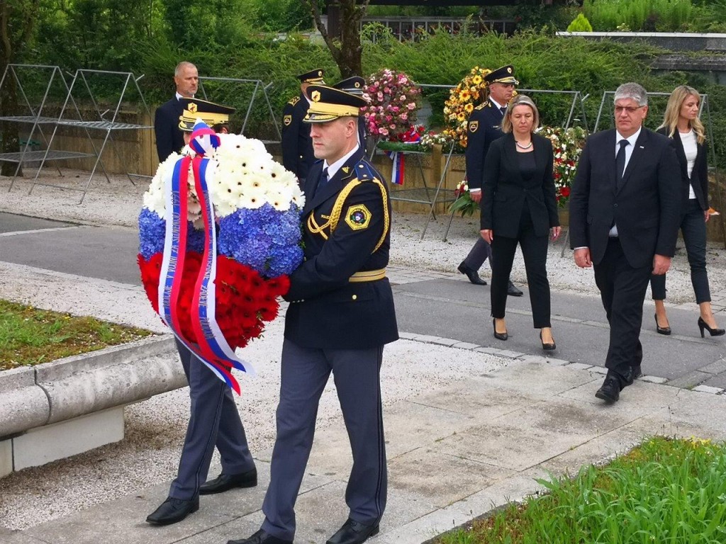 Delegacija je nato položila venec tudi pri pomniku padlim v vojni za Slovenijo 1991 na Novih Žalah v Ljubljani.