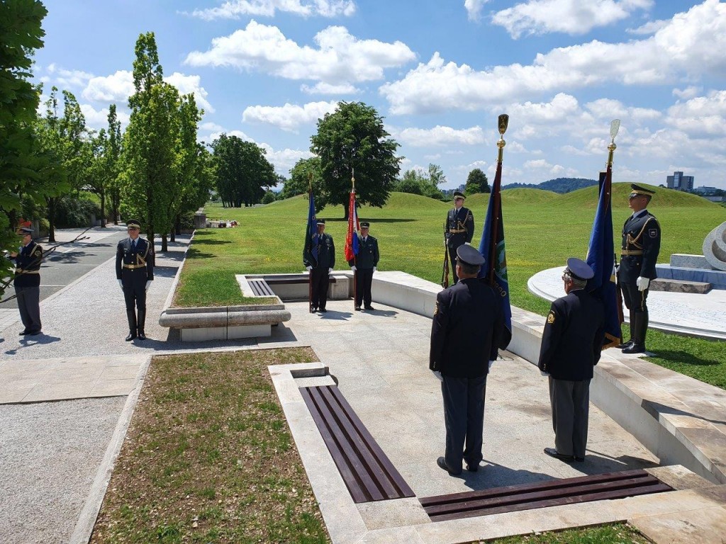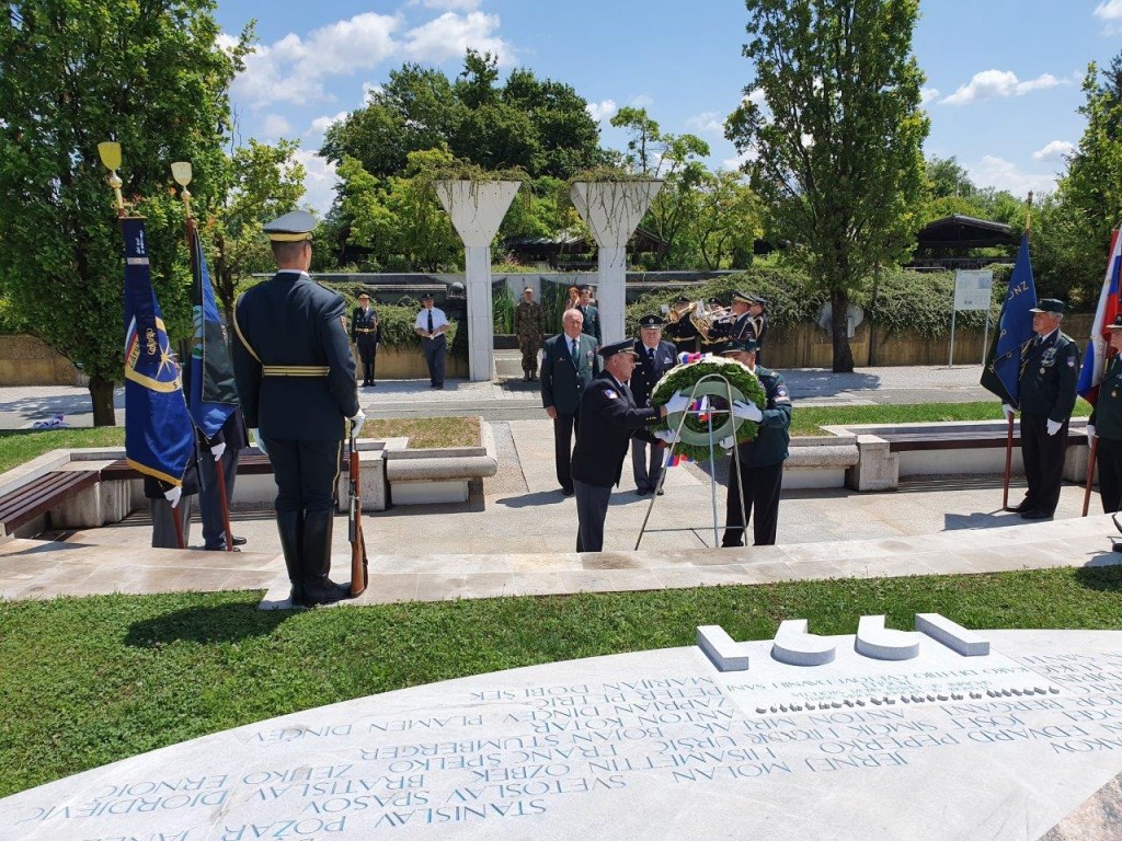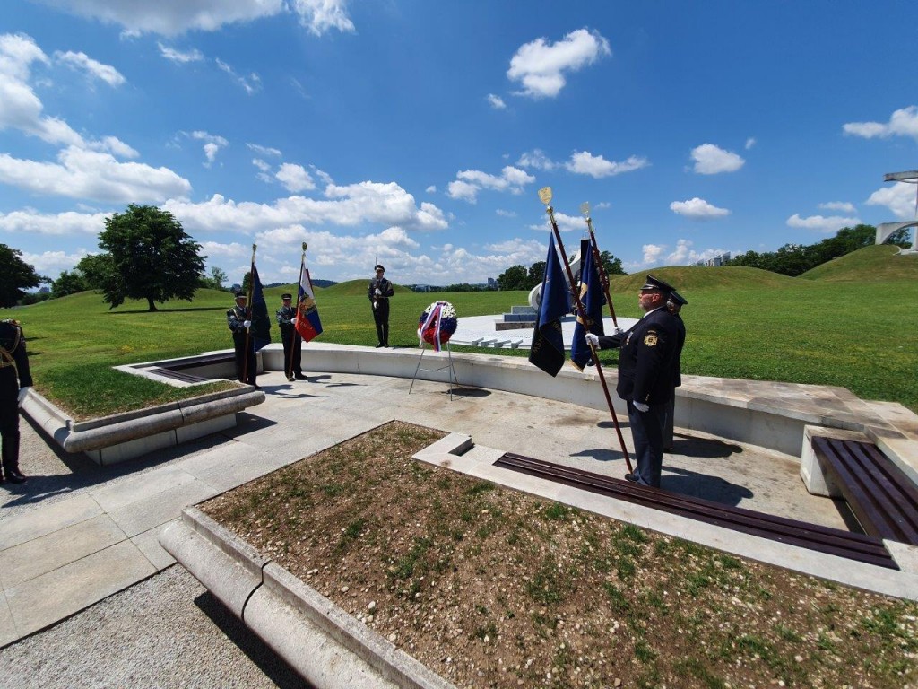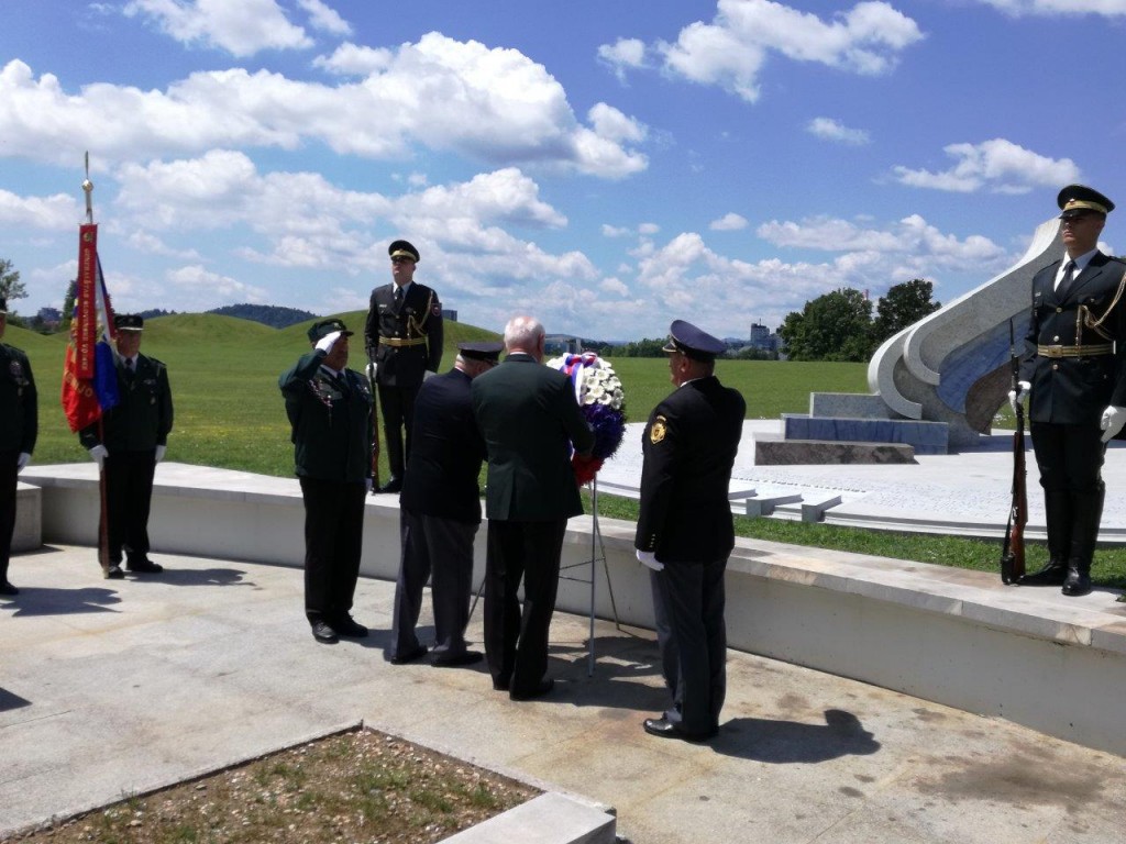 Polaganje venca pri pomniku padlim v osamosvojitveni vojni ´91 na ljubljanskih Žalah