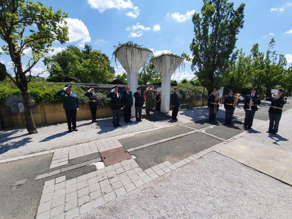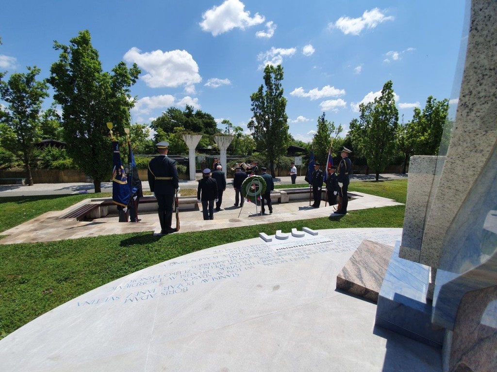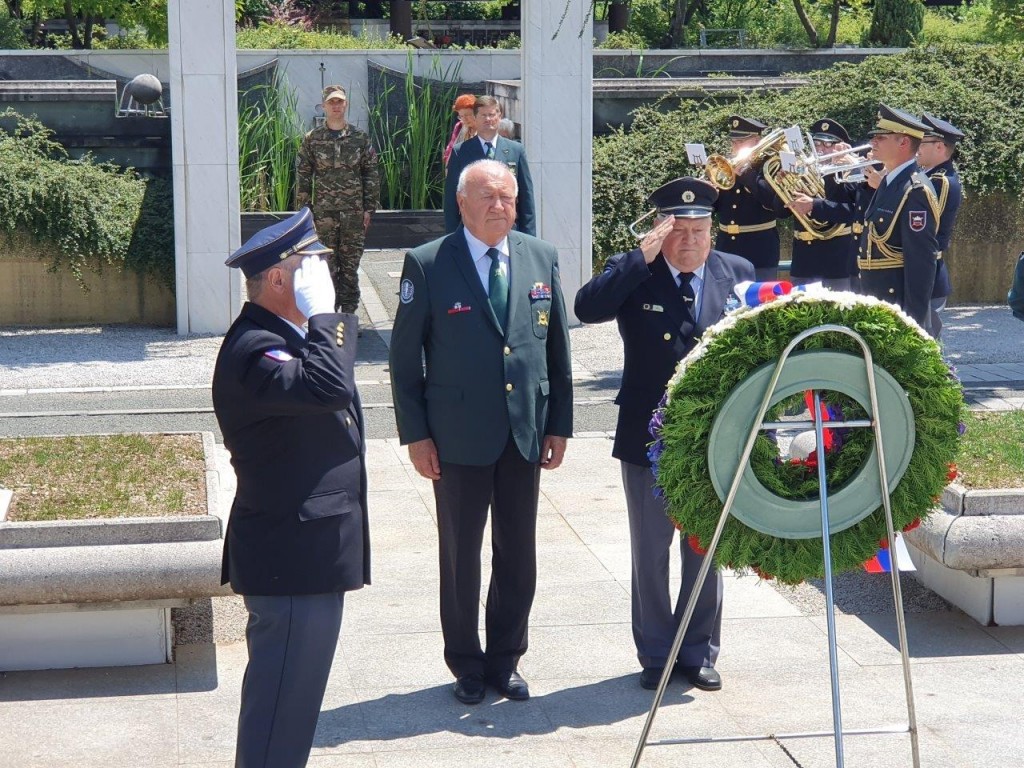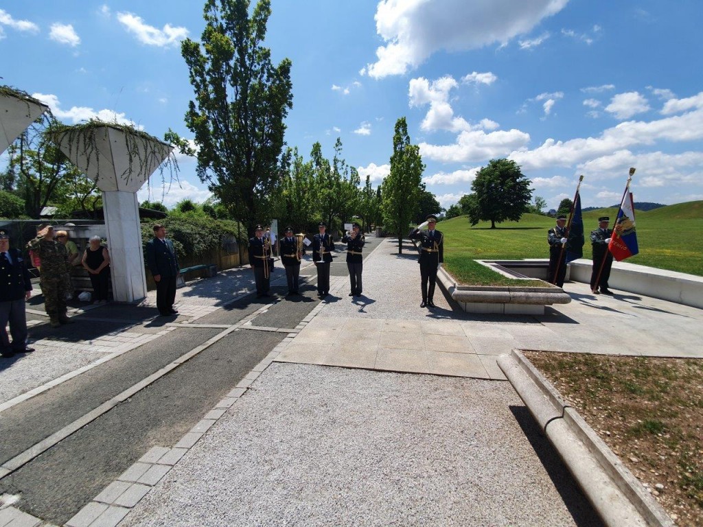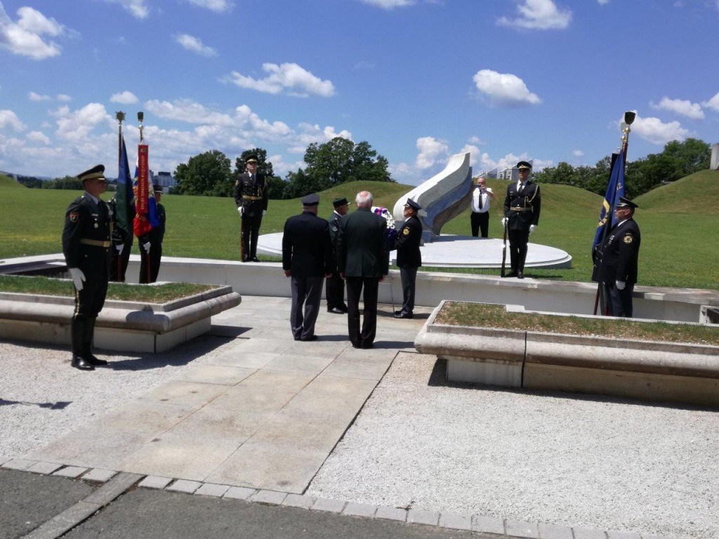Polaganje venca pri pomniku padlim v osamosvojitveni vojni ´91 na ljubljanskih Žalah