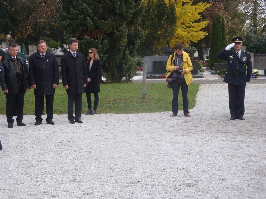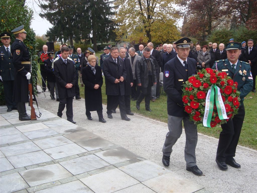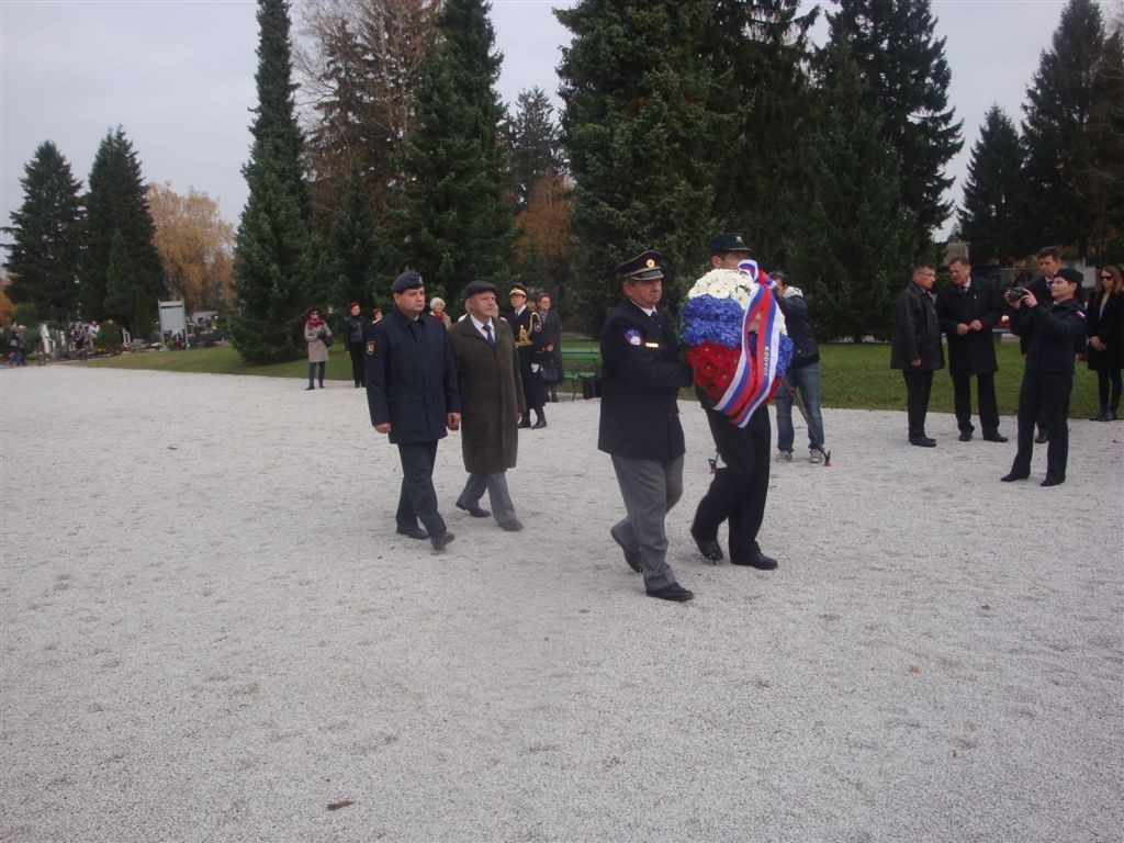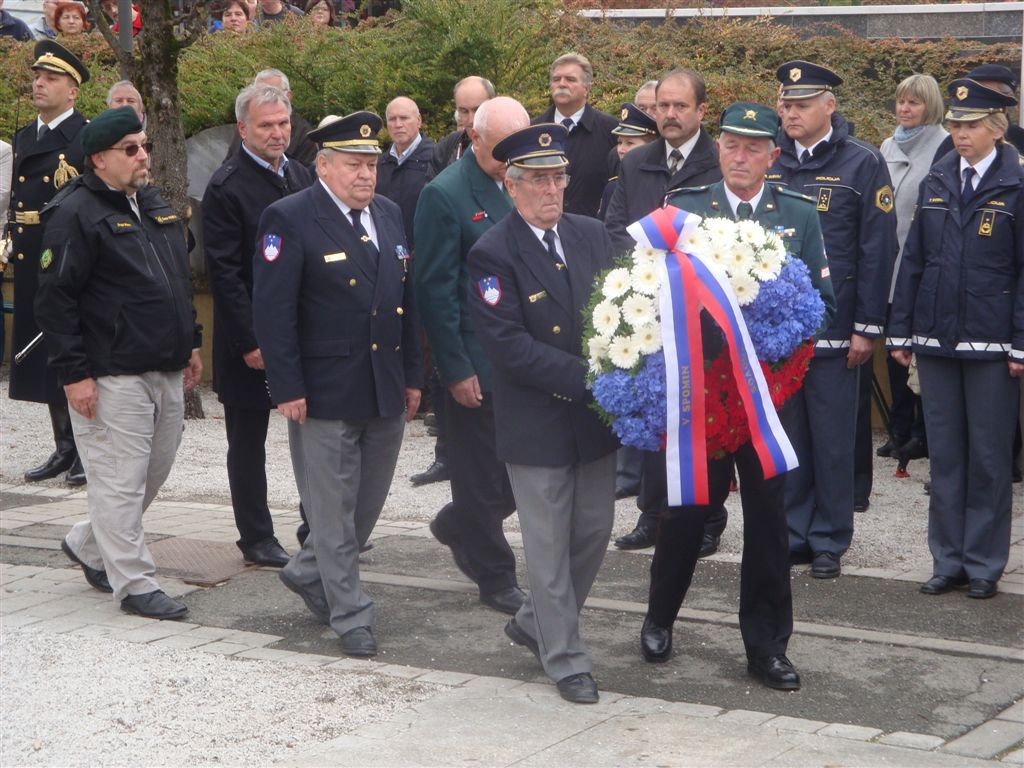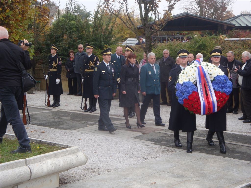 - ob 09.40 uri polaganje vencev pri Kostnici žrtev 1. svetovne vojne. Vence sta položili delegaciji MO Ljubljana in KoDVOS pod vodstvom predsednikov ZSČ in ZGDM. Sodelovali so Častna straža SV in kvartet trobil Policijskega orkestra.