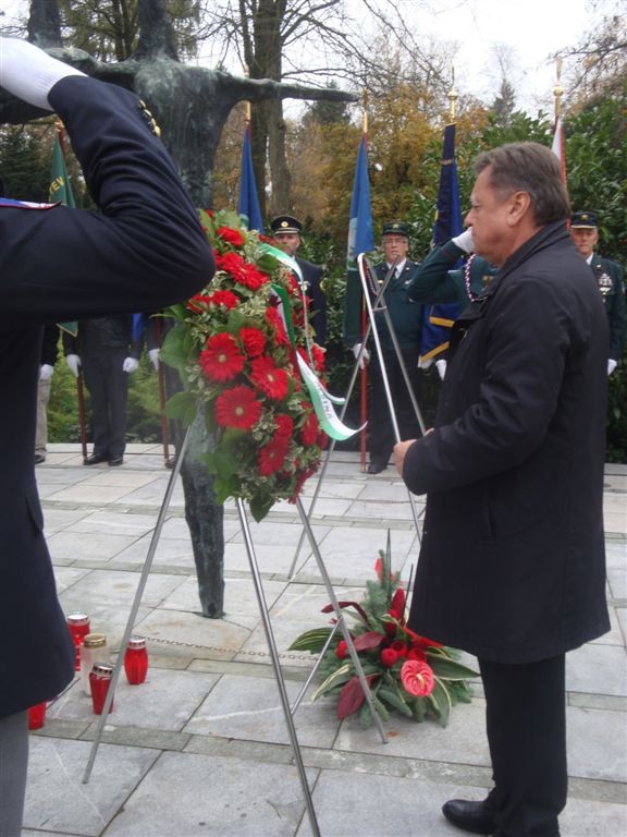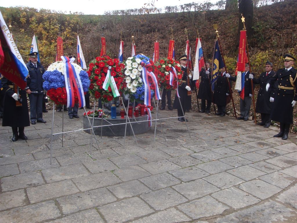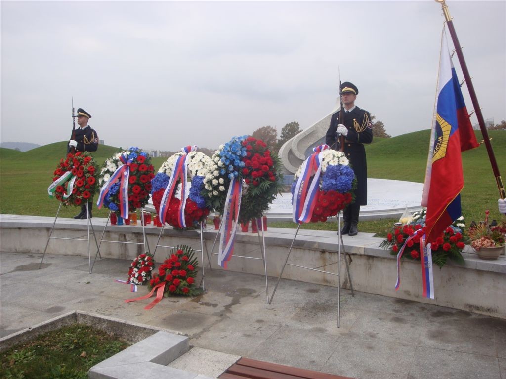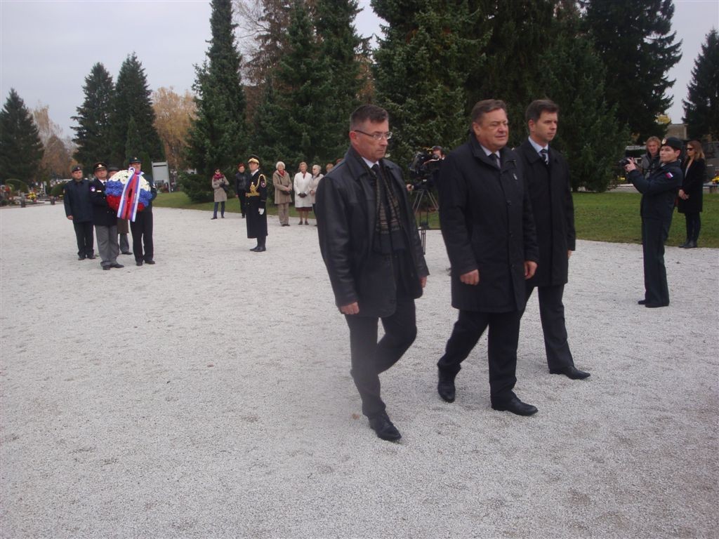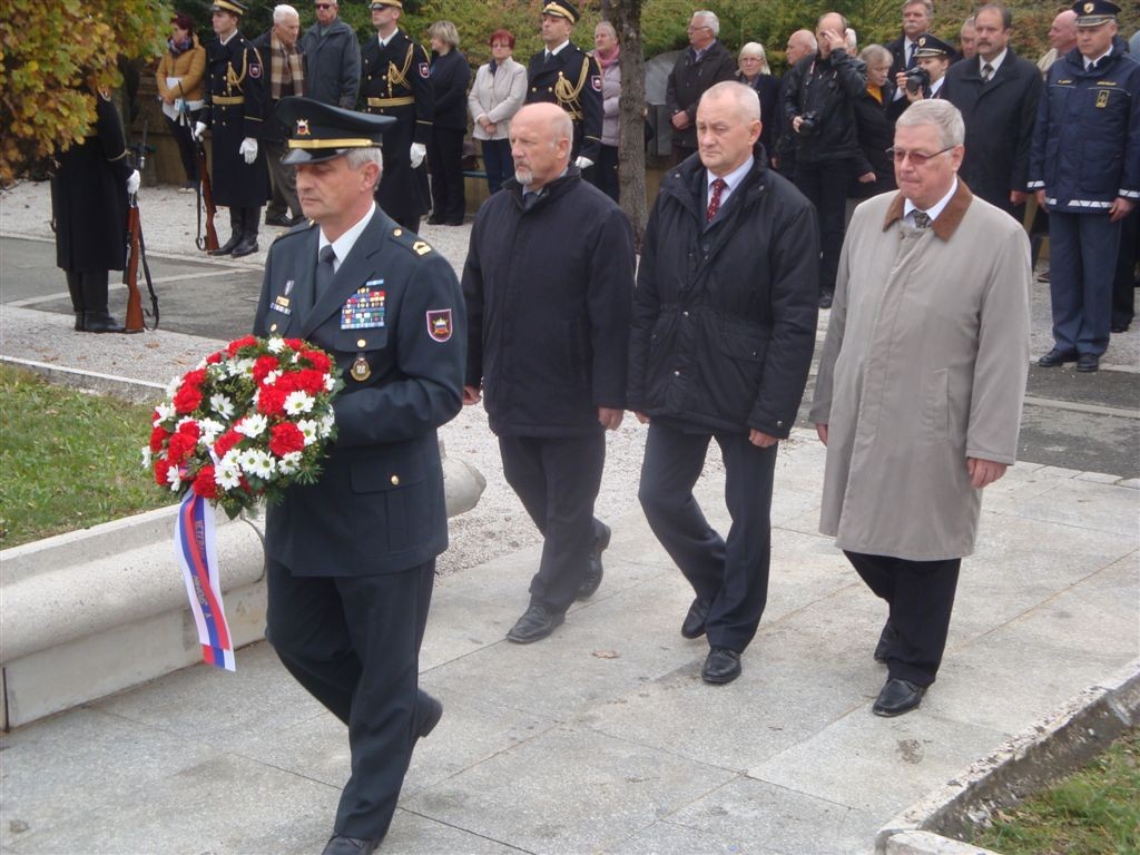- ob 09.40 uri polaganje vencev pri Kostnici žrtev 1. svetovne vojne. Vence sta položili delegaciji MO Ljubljana in KoDVOS pod vodstvom predsednikov ZSČ in ZGDM. Sodelovali so Častna straža SV in kvartet trobil Policijskega orkestra.