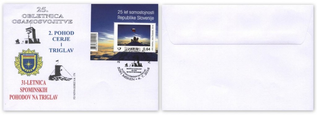 Pohodniki Cerje-Triglav so 2. pohod obeležili tudi z izdajo posebne spominske razglednice z motivom Cerja ter spominskih kuvert, opremljenih z dotiskom. V uporabi je bil tudi posebni spominski poštni žig-5291, ki je bil 4. 7. 2016 v uporabi na pošti 5291 Miren.