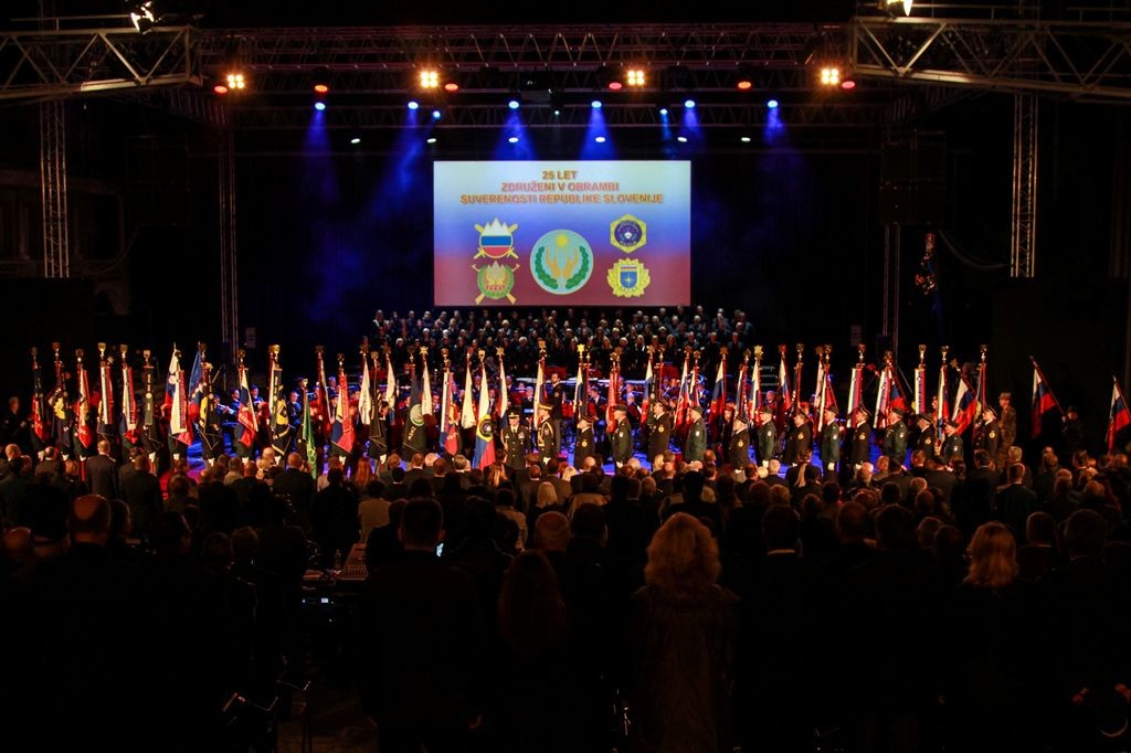 Vrhunec proslavljanja je predstavljala slovesnost z naslovom »25 let združeni v obrambi suverenosti Republike Slovenije« v ljubljanskih Križankah. Slavnostni govornik na slovesnosti je bil predsednik Vlade Republike Slovenije dr. Miro Cerar. Program so spremljali najvišji predstavniki države, organizatorji in drugi pripadniki Manevrske strukture narodne zaščite, poveljniki in člani štabov Teritorialne obrambe leta 1990, predstavniki občin, ki leta 1990 niso oddale orožja, predstavniki Zveze veteranov vojne za Slovenijo, predstavniki Zveze policijskih veteranskih društev Sever ter predstavniki Ministrstva za notranje zadeve, Policije, Ministrstva za obrambo in Slovenske vojske. Po zelo pozitivnih odzivih udeležencev slovesnosti so nas skozi celotno slovesnost pod vodstvom scenarista in režiserja Tomaža Letnarja popeljali Policijskih orkester, Orkester Slovenske vojske, pevka Eva Černe, Moški pevski zbor Kraški dom Repentabor, vokalni ansambel Reunion, plesalci koreografa Mihe Krušiča. Vse skupaj pa je povezoval igralec Daniel Malalan.