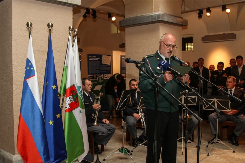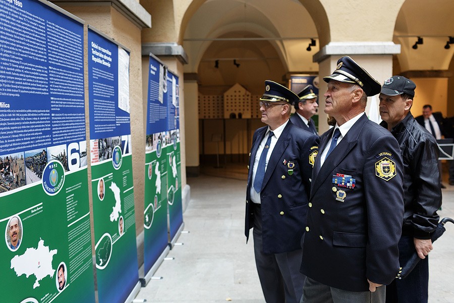 Naslednje prizorišče dogajanja je bil atrij Mestne hiše, kjer sta ob 17. uri ministrica za notranje zadeve mag. Vesna Györkös Žnidar in ministrica za obrambo Andreja Katič odprli razstavo ob 25. obletnici Manevrske strukture narodne zaščite. Gre za skupno razstavo Muzeja slovenske policije in Vojaškega muzeja Slovenske vojske. Zbrane je nagovoril tudi gostitelj prireditve, župan Mestne občine Ljubljana Zoran Janković, ki je prevzel častno pokroviteljstvo dogodkov za obeleževanje te obletnice. Zbrane sta skozi vsebino razstave popeljala Vida Škerjanc iz Muzeja slovenske policije in Zvezdan Markovič, iz Vojaškega muzeja Slovenske vojske. Program je povezoval Peter Teichmeister, obogatil pa ga je trobilni kvartet Policijskega orkestra. Razstava bo še v ponedeljek na ogled v Mestni hiši, nakar bo po programu eno leto gostovala po Sloveniji.
