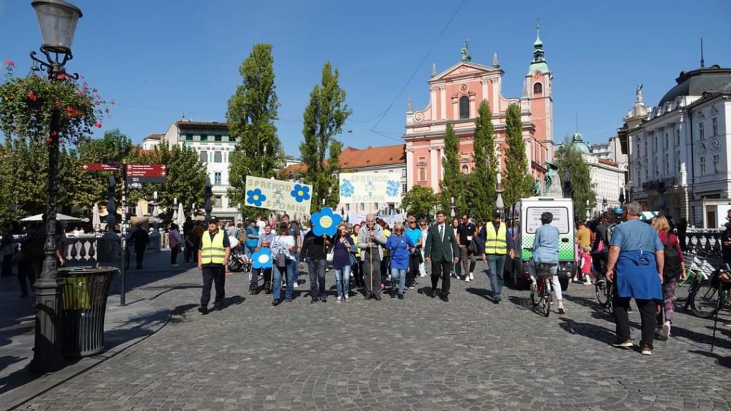Udeleženci so se zbrali pred Moderno galerijo in se po ljubljanskih ulicah sprehodili do Magistrata, kjer je potekala osrednja slovesnost. V povorko so sprejeli tudi člane društva Spominčica - Alzheimer Slovenija, ki so na platoju pred Narodno galerijo obeleževali dan boja proti tej bolezni.