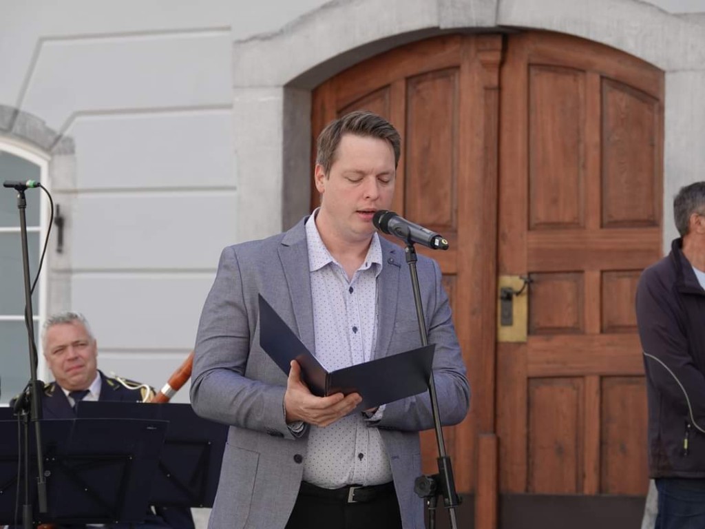 Ob 12. uri je sledilo 12 udarcev na veliki boben Orkestra Slovenske policije in minuta molka za vse žrtve vojn.