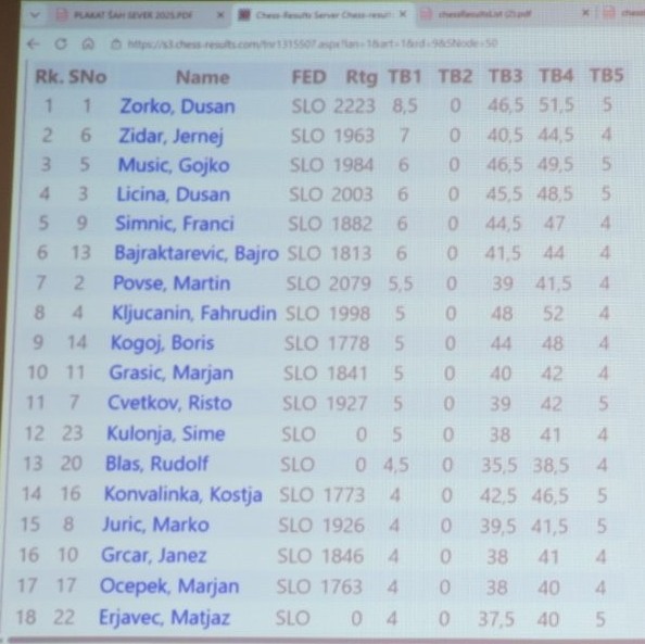Celotno razvrstitev lahko najdete in analizirate na spletnem naslovu https://s3.chess-results.com/tnr1315507.aspx?lan=1&art=0&turdet=YES&SNode=S0 ali pa se zadovoljite s priloženo datoteko tukaj.