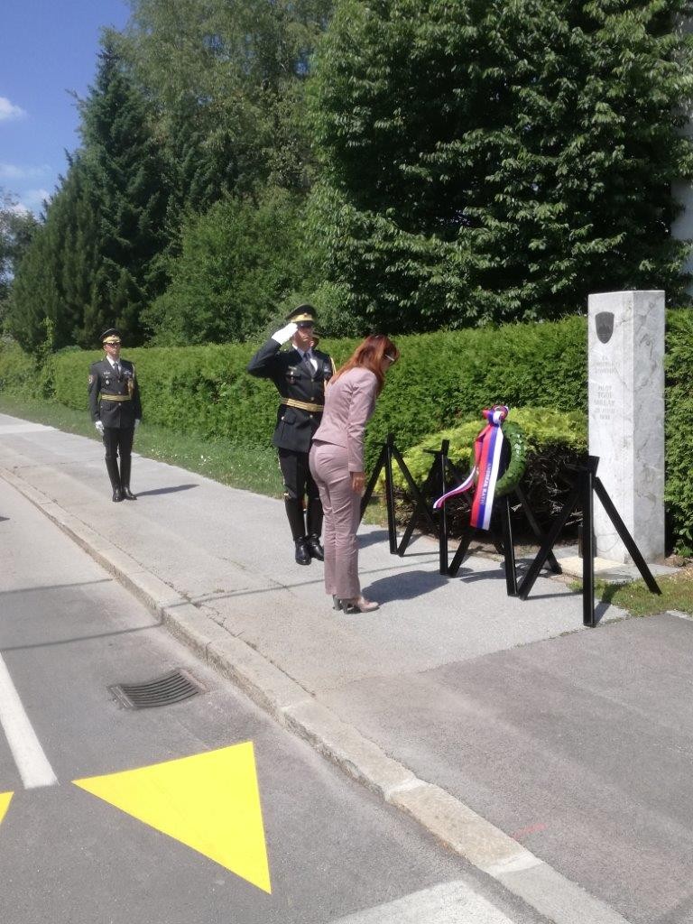Ministrica je izrazila je obžalovanje, da je nepotrebna smrt zavednega Slovenca Tonija Mrlaka postala del političnega obračunavanja in sprenevedanja. »Dejstvo je,« je izpostavila, »da si zaslug za zmago v osamosvojitveni vojni ne more prilaščati posameznik ali skupina ljudi ... In ni prav, da se danes izpostavlja posameznike, ki naj bi jim pripadale večje zasluge kot drugim.« Kot popolnoma nesprejemljivo je navedla zlorabljanje tragičnega dogodka za prisvajanje zaslug za uspešno ubranitev osamosvojitve Slovenije. »Prav je, da to povem, saj je bilo dovolj sprenevedanja in mačehovskega odnosa do Tonija Mrlaka in njegove družine. Po 27 letih se kot ministrica za obrambo počutim dolžno, da se poklonim Toniju Mrlaku in da se opravičim družini za žrtev, ki so jo dali za Slovenijo.«
