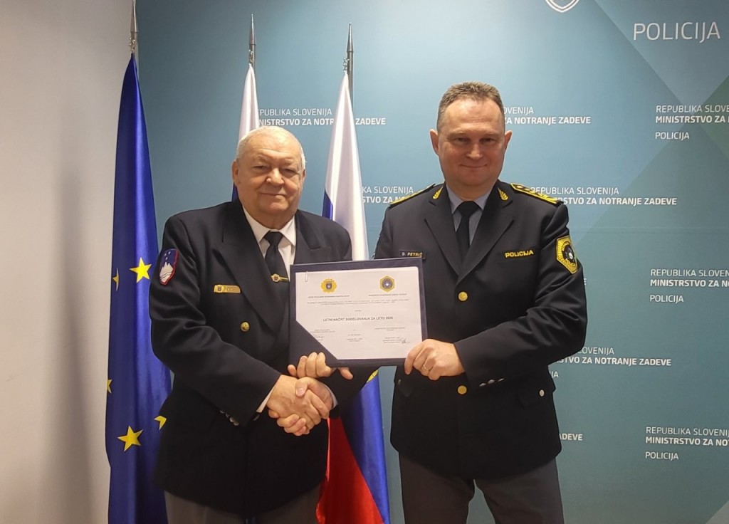 Generalni direktor policije Damjan Petrič, mag., in predsednik Zveze policijskih veteranskih društev Sever dr. Tomaž Čas sta danes, 26. januarja 2026, podpisala Letni načrt sodelovanja med Policijo in Zvezo policijskih veteranskih društev Sever za leto 2026.
